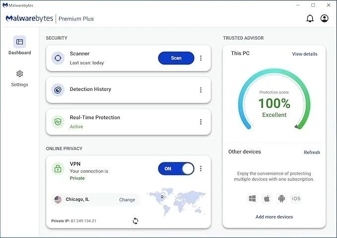 Included in the Malwarebytes Premium + Privacy VPN package are: